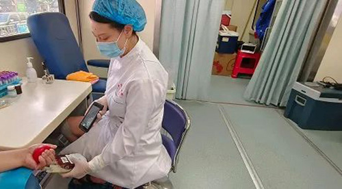 這個可以搖擺的稱是采血稱,把血袋放在這個搖擺盤上面,當(dāng)獻(xiàn)血的血液流到采血袋里面。托盤就會按照設(shè)計好的角度頻率搖擺,把血液跟抗凝劑充分的混合,使血液在血袋里面不凝固。血袋血液達(dá)到設(shè)定量,搖擺稱就會發(fā)音提醒。這樣醫(yī)護(hù)人員就可以及時處理,保障采血量的準(zhǔn)確度。血液的血袋及采血導(dǎo)管上貼上獻(xiàn)血條形碼,錄入血站管理中心的系統(tǒng)。這個條形碼,就是資料信息數(shù)據(jù),條形碼是唯一不會重復(fù)的。可以根據(jù)這個碼進(jìn)行全過程的跟蹤。采血護(hù)士用來掃條形碼的儀器。可以掃描錄入獻(xiàn)血人員的各種信息,采血量、血袋編號、采血時間地點(diǎn),采血容量,核對了獻(xiàn)血表等信息的一致性。就跟身份證一樣。作用是將信息實時上傳到血站的信息系統(tǒng),方便血液的數(shù)據(jù)共享核查。獻(xiàn)血前還需要扎針,進(jìn)行血液初篩。血液初篩是必不可少的環(huán)節(jié),可以初步檢測所獻(xiàn)的血液是否符合要求,這也是確保血液安全必不可少的步驟。篩查血型、血紅蛋白、轉(zhuǎn)氨酶等項目。