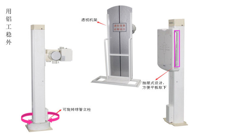1、DR 支架采用電動(dòng)的形式進(jìn)行各種操作,支架固定安裝在汽車上,支架可進(jìn)行上下升降,滿足不同的檢查需求,胸片架與球管支架550m范圍內(nèi)上下自動(dòng)跟蹤。
