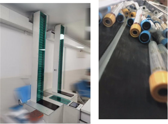 采血試管自動化傳輸平穩準確的傳到各個位置,前段的試管跟貼標機系統和后端分揀機的系統實現對接。