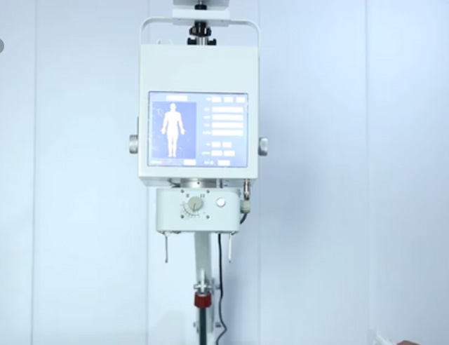 這是一臺(tái)便攜式移動(dòng)DR,它的操作使用方法是怎樣的呢?即使在最狹窄的空間內(nèi)也易于操作和定位。首先打開開關(guān)把移動(dòng)支架調(diào)整到合適的高度。機(jī)頭調(diào)整到合適的拍攝高度,按下開關(guān)打開視野燈,調(diào)節(jié)照射燈的大小。調(diào)整束光器的視野范圍,選擇合適的部位調(diào)整KV、MA等曝光參數(shù)。數(shù)字工作站查看圖像,曝光方式一:兩檔有線手閘曝光,曝光方法二:無線遙控曝光。這兩種曝光方式選其中一個(gè)就可以了。電腦上顯示圖像,調(diào)整圖像到滿意的狀態(tài)就可以了。高千伏攝影圖像圖層層次更加豐富,X射線穿透力更強(qiáng)適用多體型患者拍攝。跟固定DR的拍攝效果差不多,臨床圖像清晰。極速快充電,即插即用型。