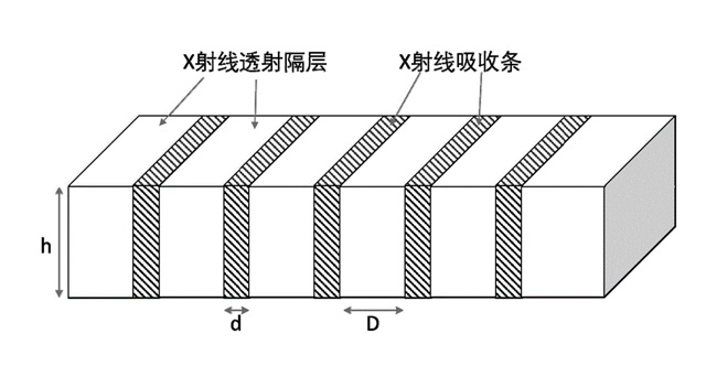 焦距(f):斷面看鉛條延長線會聚點到柵板垂直距離,即柵板焦距(半徑)。柵密度(N):每厘米范圍內含有的鉛條數,一般40~65線/cm。柵比(R):鉛條高度與柵條間隙之比,比值越高濾除散射線能力越強,一般8:1~14:1之間。結構組成:3~5mm薄板,用0.05~0.1mm鉛條,夾持在鋁或紙之間平行或按斜率排列,相鄰鉛條間用易透X線物質填充定位、黏合,如木、紙、鋁片等。