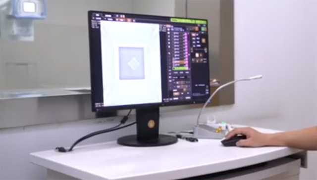 DR主要有X射線輻射源,機架攝影床,影像增強器,高壓發生器和計算機系統組成。首先檢查DR系統的整體外觀,標有廠家信息,型號,編號參數,生產日期清晰可認的標志。看看空氣比釋動能怎么檢定,首先打開視野燈。然后把探測器放到視野燈照射中心。調節視野窗值最大。調節探測器焦點到探測器1米的距離。最后打開探測器。接下來到控制室設置曝光條件進行曝光,更改千伏為70千伏。調節為10毫秒,按手柄進行曝光,保持條件不變再重復曝光兩次。然后再進去DR室讀取計量儀數據并記錄。讀取3次計數測量數值。并且記錄處理。這個就是空氣比釋動能測定過程。目前流行的計量儀都集成了輻射輸出的值和管電壓測量功能。輻射輸出的值和管電壓可以直接通過計量儀讀取數值。