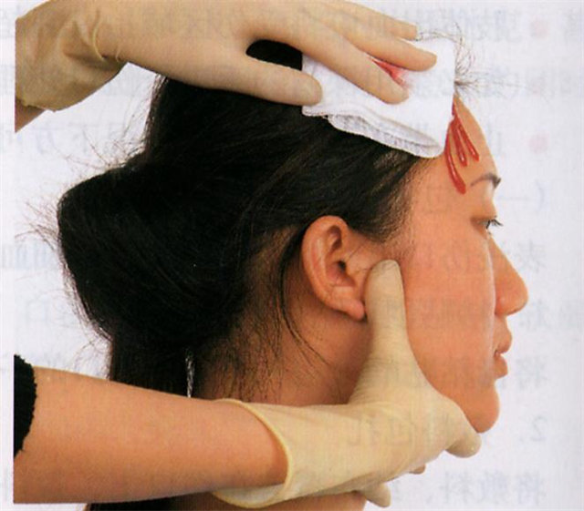 (1)頭頂出血用手指壓迫傷口同側(cè)耳前方顳淺動脈搏動點。