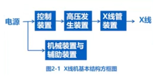 影像技術檢查、設備管理。醫用X線機分為診斷用X線機和治療用X線機兩大類。診斷用X線機的基本結構由X線發生裝置和外圍裝置兩大部分組成。X線機的基本結構是,電源-控制裝置-機械裝置與輔助裝置-高壓發生裝置-X線管裝置-X射線。主要人是產生X線,控制X線的穿透能力。輻射強度和曝光時間,根據臨床檢查需要配裝的各種機械裝置。