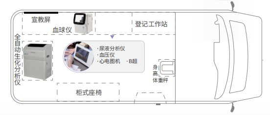 便捷、周全、高效的上門體檢服務(wù),智慧體檢車就能把健康醫(yī)療送到家門口,定制化可根據(jù)不同需求進(jìn)行個(gè)性化定制改裝自動(dòng)化數(shù)據(jù)自動(dòng)采集,記錄,生成規(guī)范檢驗(yàn)數(shù)據(jù)庫標(biāo)準(zhǔn)化國家公 衛(wèi)服務(wù)標(biāo)準(zhǔn)常規(guī)病例隨訪標(biāo)準(zhǔn)化操作流程智能化智 能健康管理系統(tǒng)智能風(fēng)險(xiǎn)評估醫(yī)學(xué)知識(shí)庫。血壓、血糖、B超、心電圖檢查。享受優(yōu)質(zhì)的體檢醫(yī)療服務(wù)。通過檢查后身體有問題就要早治療早預(yù)防。20多分鐘就可以完成體檢項(xiàng)目,省時(shí)省力。農(nóng)民得到了實(shí)惠,都花錢少了。體檢方便了。推動(dòng)了公共衛(wèi)生服務(wù)的均等化。隨著醫(yī)療服務(wù)的不斷提高,體檢車就可以生化檢測,血液檢測,大大的節(jié)省了檢測報(bào)告時(shí)間。控制一些疾病。體檢車,可根據(jù)不同需求進(jìn)行個(gè)性化定制改裝。數(shù)據(jù)自動(dòng)采集、記錄,生成規(guī)范檢驗(yàn)數(shù)據(jù)庫。并依據(jù)國家公衛(wèi)服務(wù)標(biāo)準(zhǔn)常規(guī)病例隨訪標(biāo)準(zhǔn)化操作流程,體檢車專用設(shè)備不受環(huán)境溫度的影響,隨開隨用,能適應(yīng)春、夏、秋、冬四季以及高寒、高原、炎熱等惡劣環(huán)境。