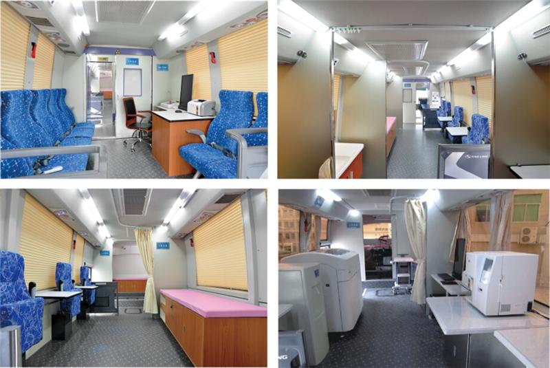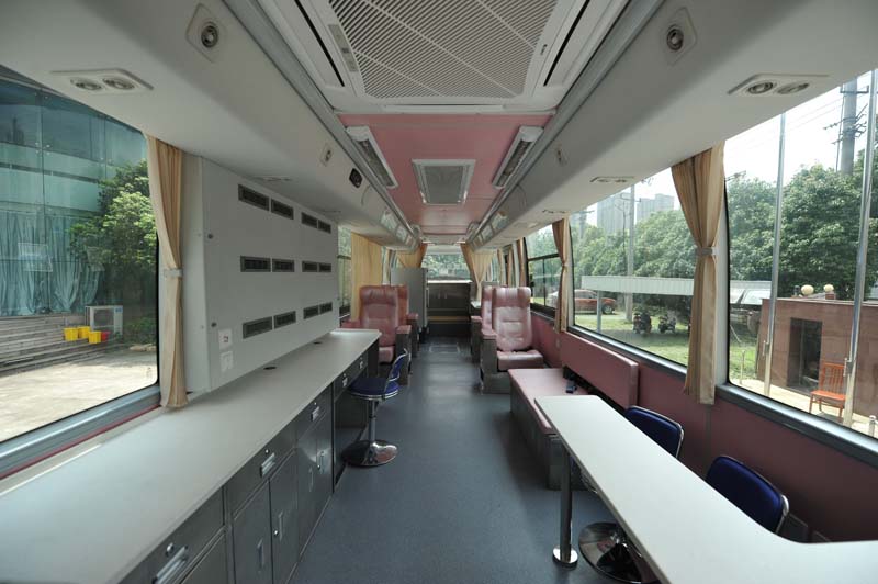 專業的流動獻血車廠家會將現代健康體檢理念融匯于整車研發過程,看似小小的獻血車實際所用到醫療設備一應俱全,大部分流動的獻血車和采血車都有空調、發電機、熱合機臺、恒溫保鮮冰柜、休息床、工作臺、工作椅、工作桌、立式飲水機、烘手機、采血冰箱 30米電纜軸、配電柜、采血椅、采血臺、紫外線消毒燈、 污物桶、滅火器、排風系統等。這種移動的獻血車和體檢車類似,是一個移動體檢中心可用于現場體檢和采血。