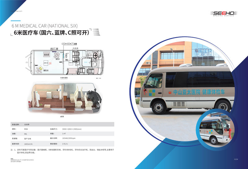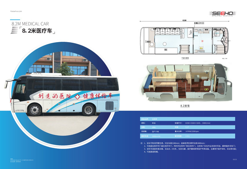 體檢車是為醫(yī)療行業(yè)設計的可以滿足常規(guī)體檢、治療、應急醫(yī)療救援等功能的專用車輛,車內配備專業(yè)車載X射線機、心電超聲檢查、電測聽室、全自動生化分析儀以及檢查床、冰柜、空調和紫外線消毒燈等先進醫(yī)療儀器設備。