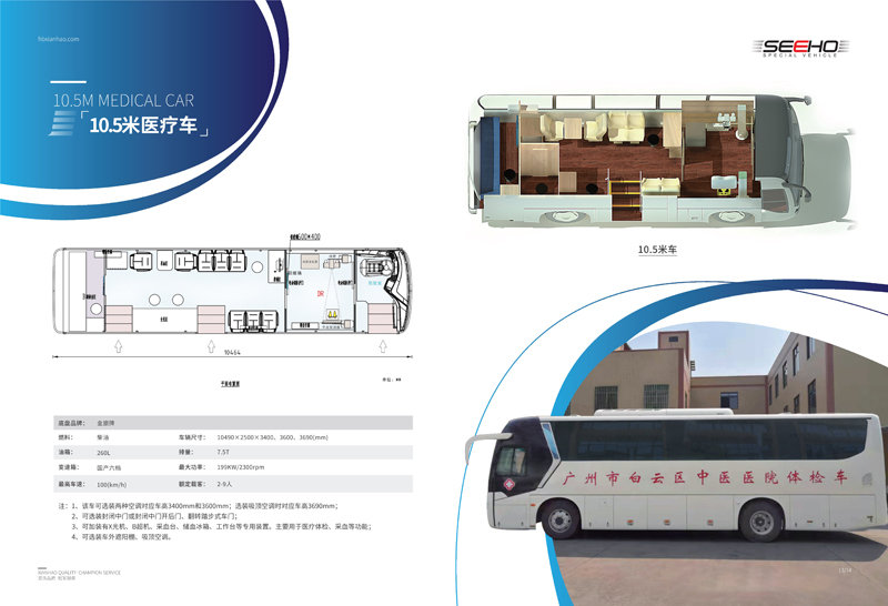 我司生產的職業(yè)病體檢車均選用一線品牌車(宇通、金龍、金旅); 車長有6米、7米、8.2米、9米、10.5米、11米、12米可選。